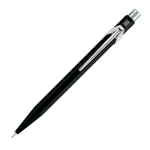 Mechanical pencil styled to match the classic 849 Metal ballpoint. Aluminium body with the distinctive Caran d'Ache metal pocket clip; and 'Caran d'Ache' engraved around the polished button. 0.7mm lead. Eraser under the top button.