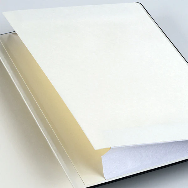 LEUCHTTURM1917 Classic Master Notebook in a handy 'slim' format, perfect for sliding into briefcases and laptop bags. Sturdy black hard cover with rounded corners, an expandable pocket in the cover (capable of taking A4 sheets), elastic fastener, ribbon page marker, and a thread-stitched inner book are standard features. The thread-bound book opens flat. Cover and spine labels are supplied for labelling and archiving.